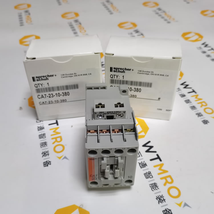CA7-23-10-380,Sprecher-Schuh,系列CA7,非反向接觸器,CA7型,UL認(rèn)證,CSA認(rèn)證,3P,3PH,32A AC-1,23A AC-3,600V,5HP @ 200V,7.5 HP @ 230V,15HP @ 460V,15HP @ 575V,在電源側(cè)配有380-400V 50Hz / 440V 60Hz交流線圈,1個(gè)常開(kāi)輔助觸點(diǎn),開(kāi)式,適用于CA7系列電機(jī)控制系統(tǒng)。